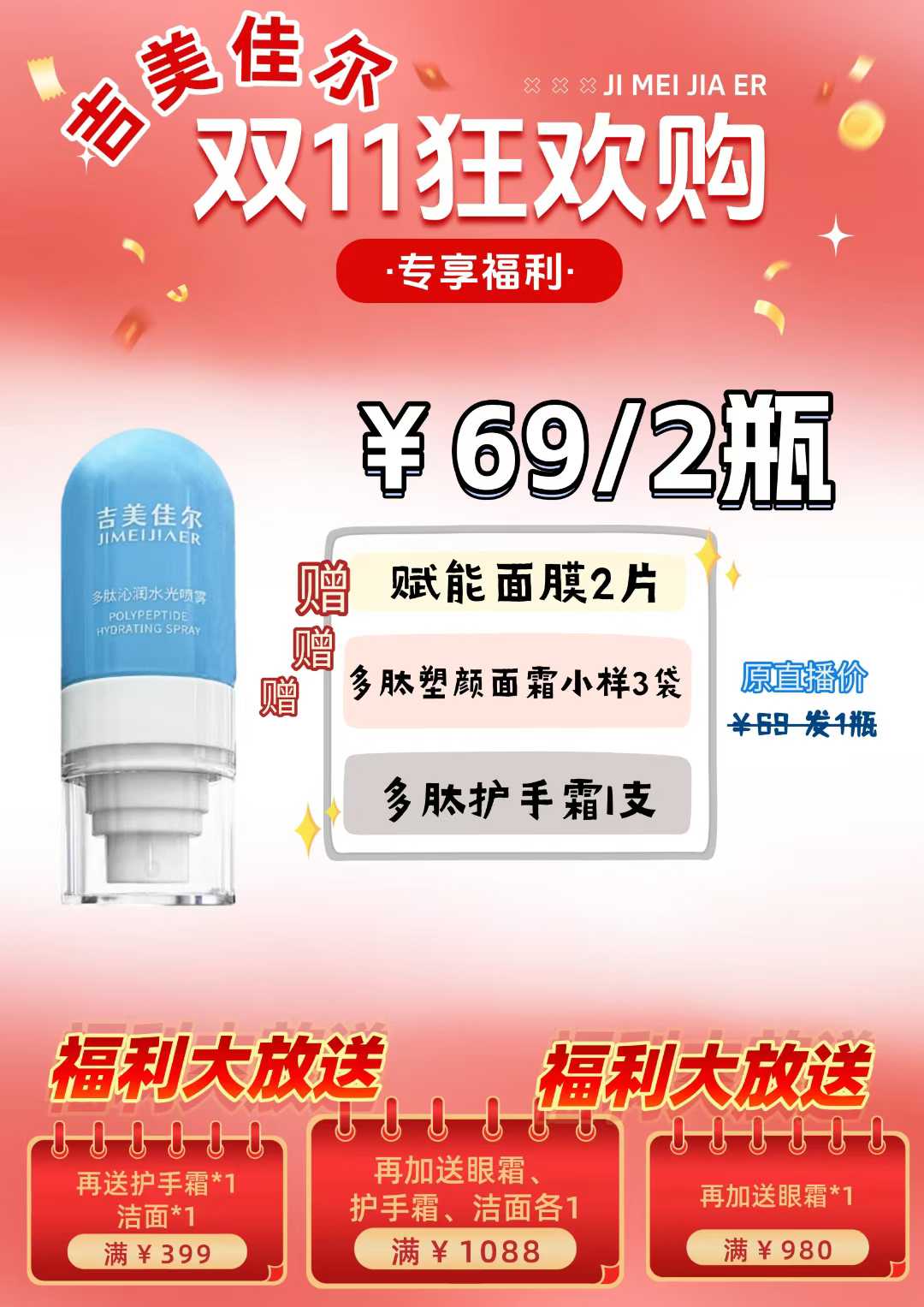 吉美佳尔多肽沁润水光喷雾 |双十一促销|价格优惠|满减还有赠品