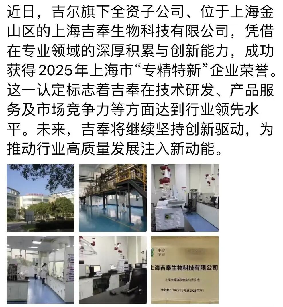 2025回顾| 吉奉生物获 “专精特新” 认定 行业竞争力领先
